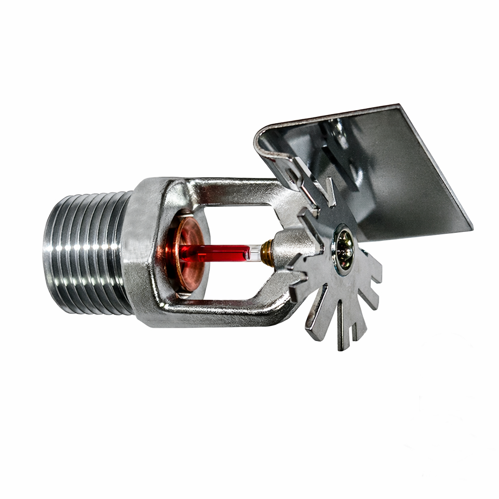 The Standard/ Quick Response Horizontal Sidewall are generally used in lieu of pendent and upright sprinklers because of building construction or installation economic considerations. They are designed for installation along a wall or the side of a beam and just beneath a smooth ceiling. Installed with their centerline of waterway horizontal, these sprinklers produce a quarter-spherical water discharge pattern that is predominately directed downward and outward from the deflector; however, a portion of the spray is also directed towards the back wall.
