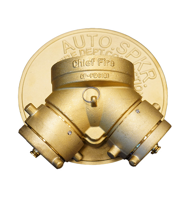 The Straight Pattern Fire Department Connection is UL Listed and FM Approved. Manufactured from brass* components to increase service life. The single clapper design features brass clapper and brass seats within a cast brass body. The 21/2 inlets are pin lug design for ease of use and compatibility with local fire service districts. Swivel gaskets are included. Breakable caps or plugs should be installed to protect threads and prevent debris from being accidently introduced into the water way.